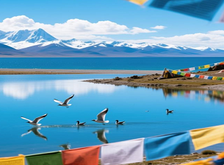 纳木措(错)[Nam-co]又称纳木湖。纳木错位于中国的青藏高原。在历史文献上记载,此湖像蓝天降到地面,故称“天湖”;而湖滨牧民说因湖面海拔很高如同位于空中,故称“天湖”。藏语中,"错"是"湖"的意思。当地藏族人民叫它"腾格里海",意思是"天湖"。信徒们尊其为四大威猛湖之一,传为密宗本尊胜乐金刚的道场,是藏传佛教的著名圣地。纳木措地处被称作“世界屋脊”的青藏高原上,属于中国五大湖区的“青藏高原湖区”。是世界上高的大湖。在北纬30°30′至30°35′和东经90°16′至91°03′之间。位于西藏自治区的中部,在那曲地区的东南边界和拉萨市区划的西北边界上。约有五分之三的湖面在那曲地区的班戈县内,五分之二的湖面在拉萨市的当雄县内。纳木错向南距拉萨市区约100千米。湖的南部岸边为念青唐古拉山东段的北侧山麓,而湖的西北侧及北侧为高原上的低山丘陵。